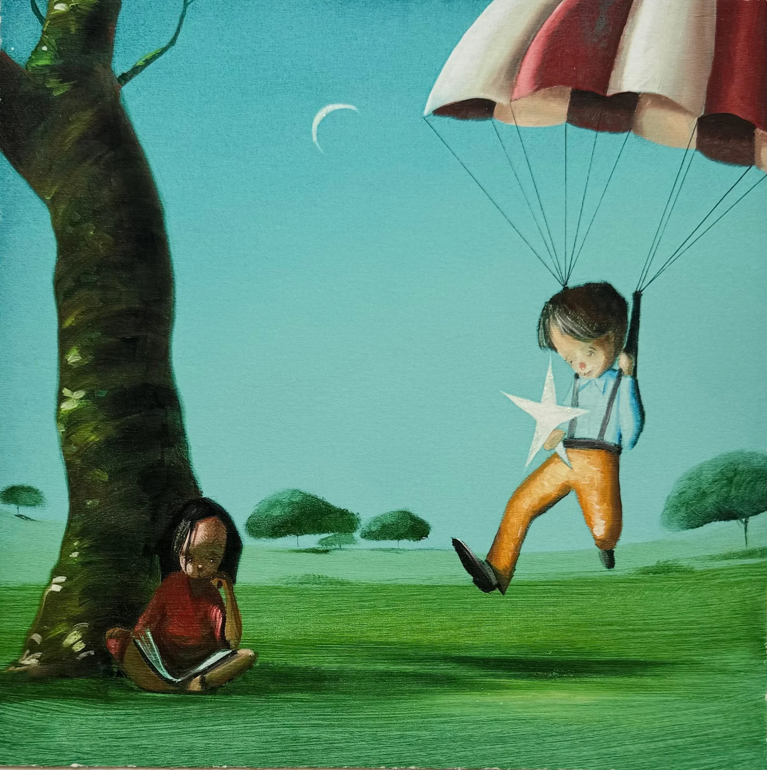 Diego Santini nasce ad Ancona nel 1975 e fin da piccolo ha avuto uno spiccato senso artistico, dimostrando attitudine e versatilità, toccando vari ambiti dell’arte visiva, dalla pittura all’illustrazione. Diplomatosi alla scuola d’arte, frequenta corsi d’illustrazione per perfezionare la sua tecnica. Partecipa a numerose mostre collettive e personali. Diego Santini è anche un eccellente musicista.